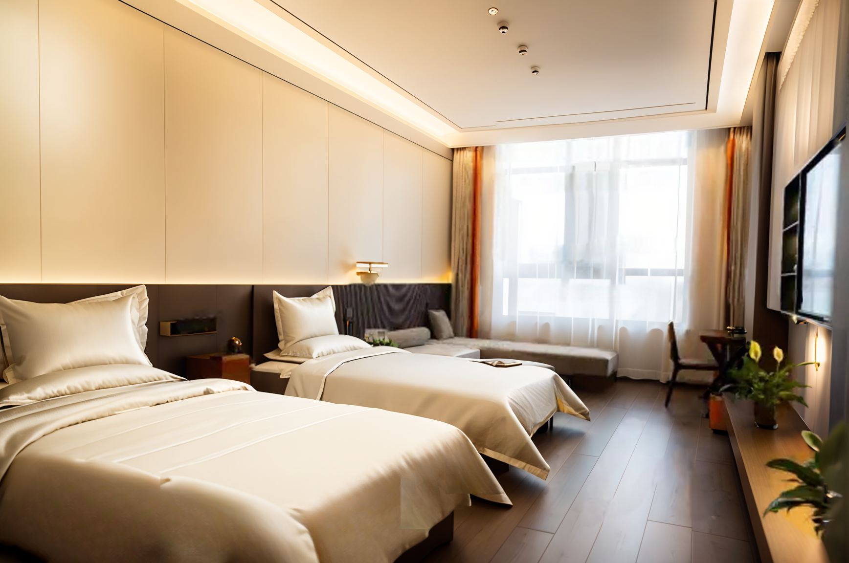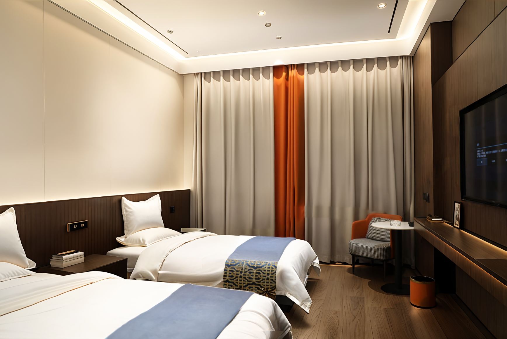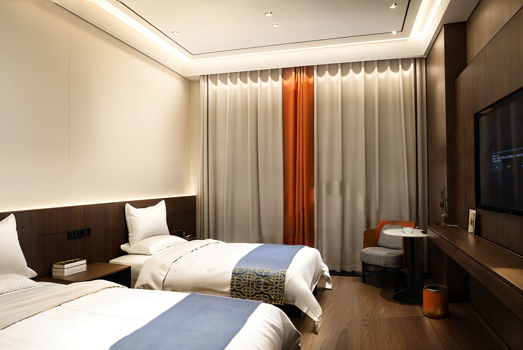 云舒?漫享轻奢双床房【静音舒眠深睡床垫&木制休闲椅】